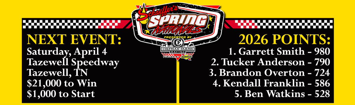 The Schaeffer’s Oil Spring Nationals Series presented by Coltman Farms Racing and fueled by Sunoco season rolls on with a lucrative Easter weekend tripleheader from April 2-4 in the states...